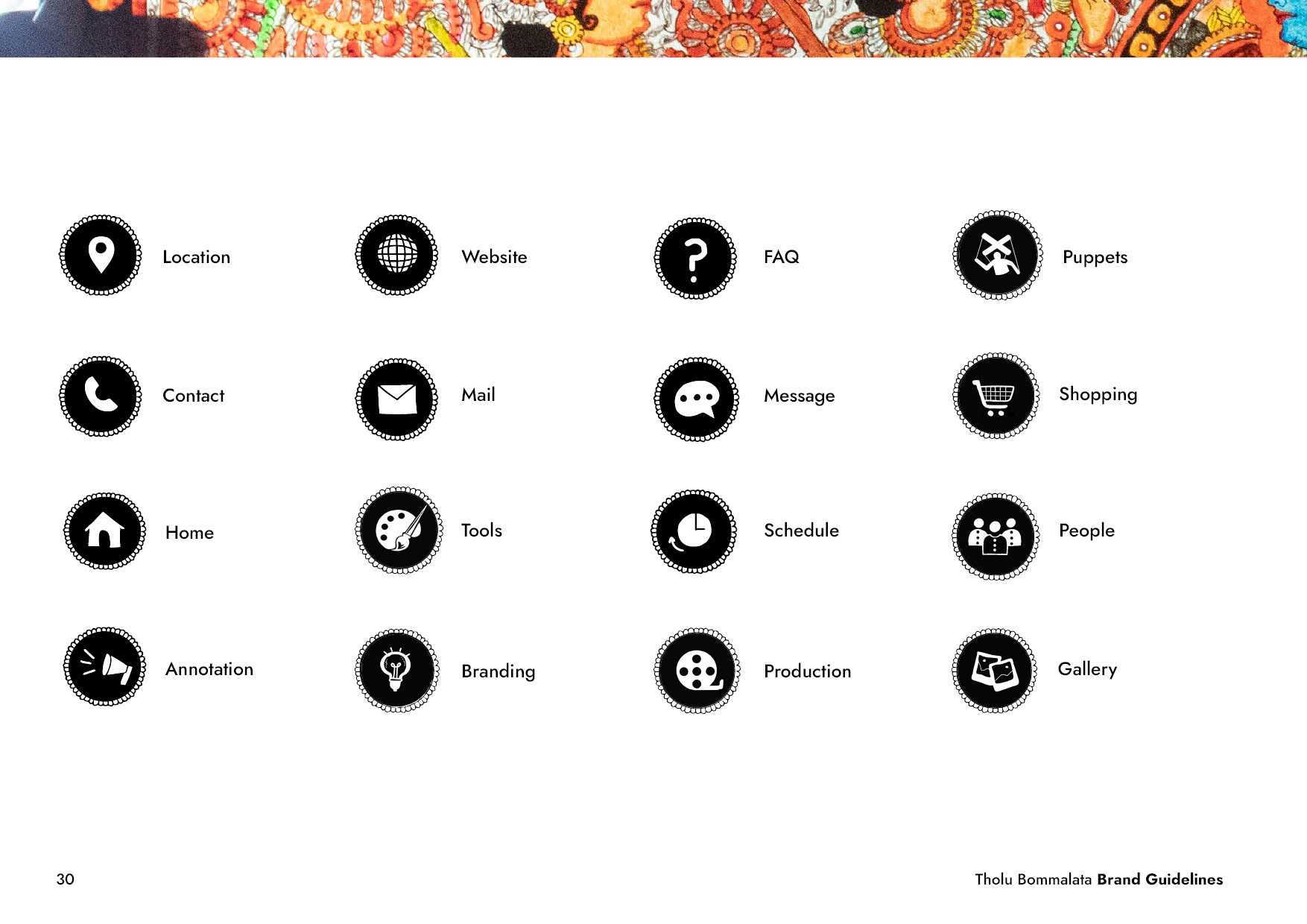 Creating a brand identity and style guide for the artisans who practice the craft of Tholu Bommalata (shadow puppetry). The process was a collaborative work. My process is shown at the end.